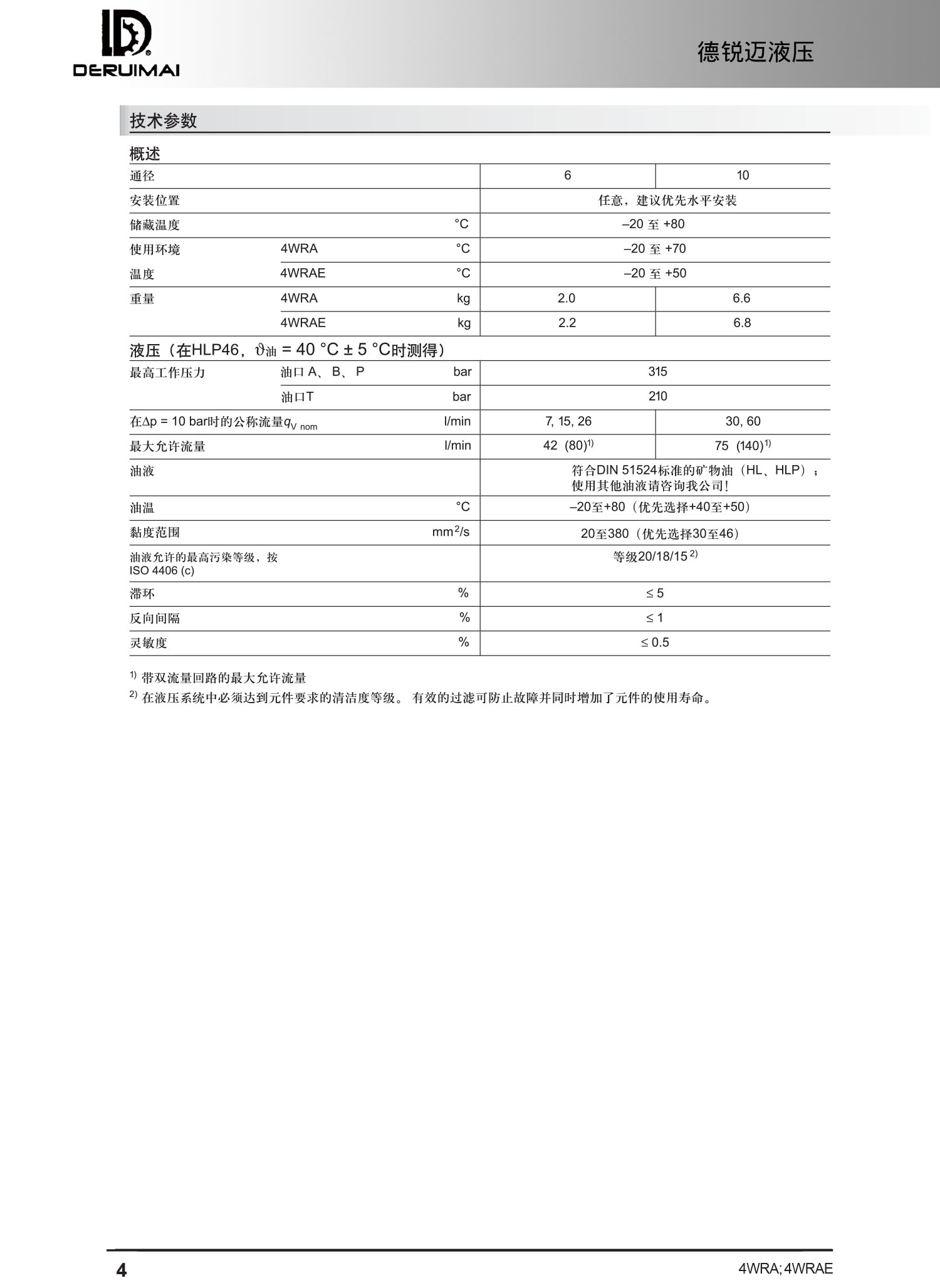 4WRA10-2X-GB系列/4WRA10-2X系列/4WRAE6-2X/4WRAE10-2X系列比例换向阀